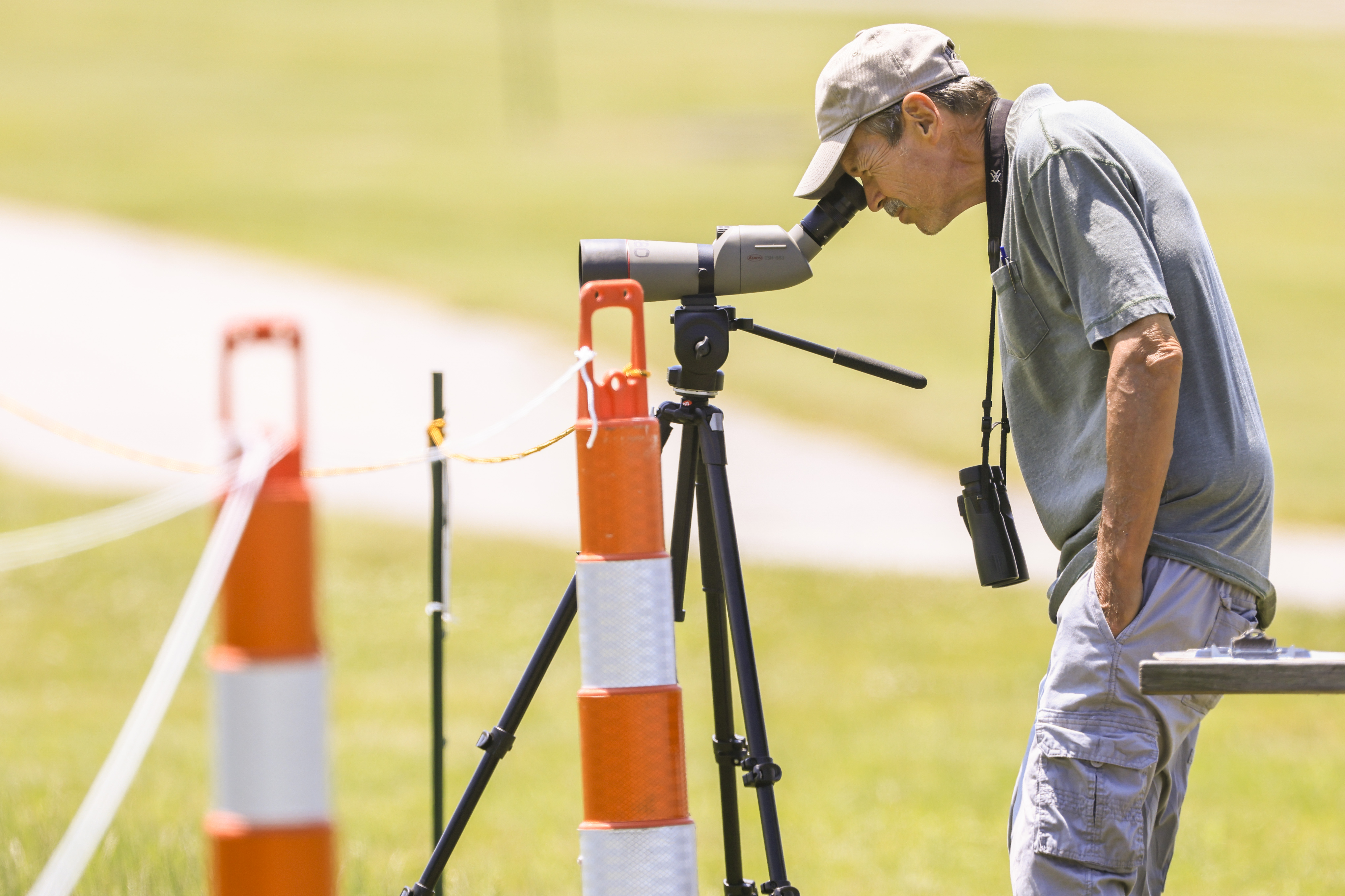 The nest-watchers, affectionately referred to by Black Swamp Executive Director Kimberly Kaufman as “plover-achievers”, work two-hour shifts in groups of four. Mr. Burris said the majority of the park-goers have been very cooperative in honoring the protected zone around the nesting site.