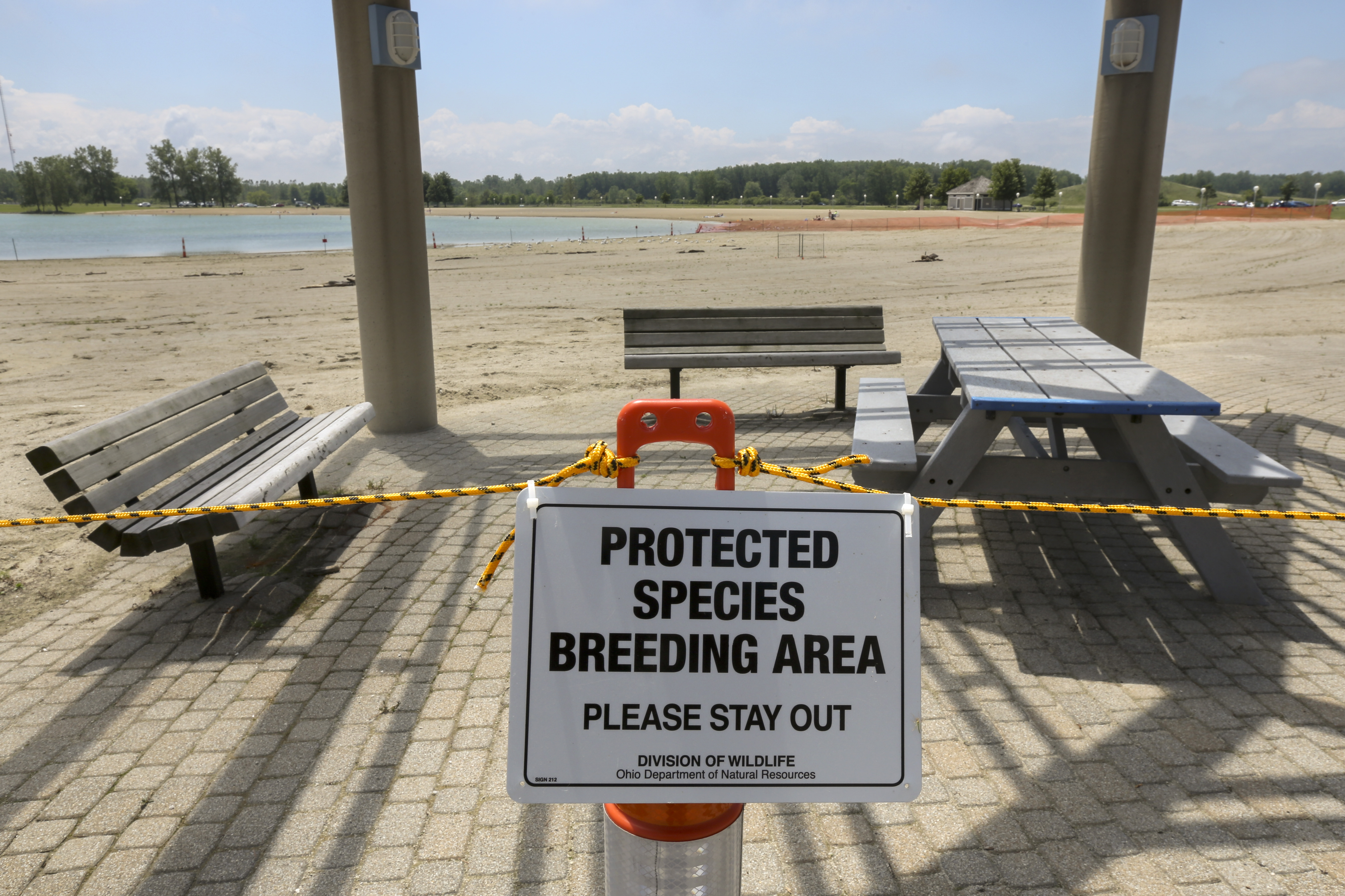 The plover pair that fledged the Maumee Bay male has returned to that Montrose Beach site in Chicago this year but lost their first clutch of four eggs to a skunk that was able to breach the protective enclosure. A larger and stronger structure is now in place around that nest, and the Chicago Park District announced that the pair is making another attempt at nesting and at least one egg was in a new nest by Thursday. The Chicago beach nest also previously had been threatened by an array of other potential predators, including raccoons and coyotes.
